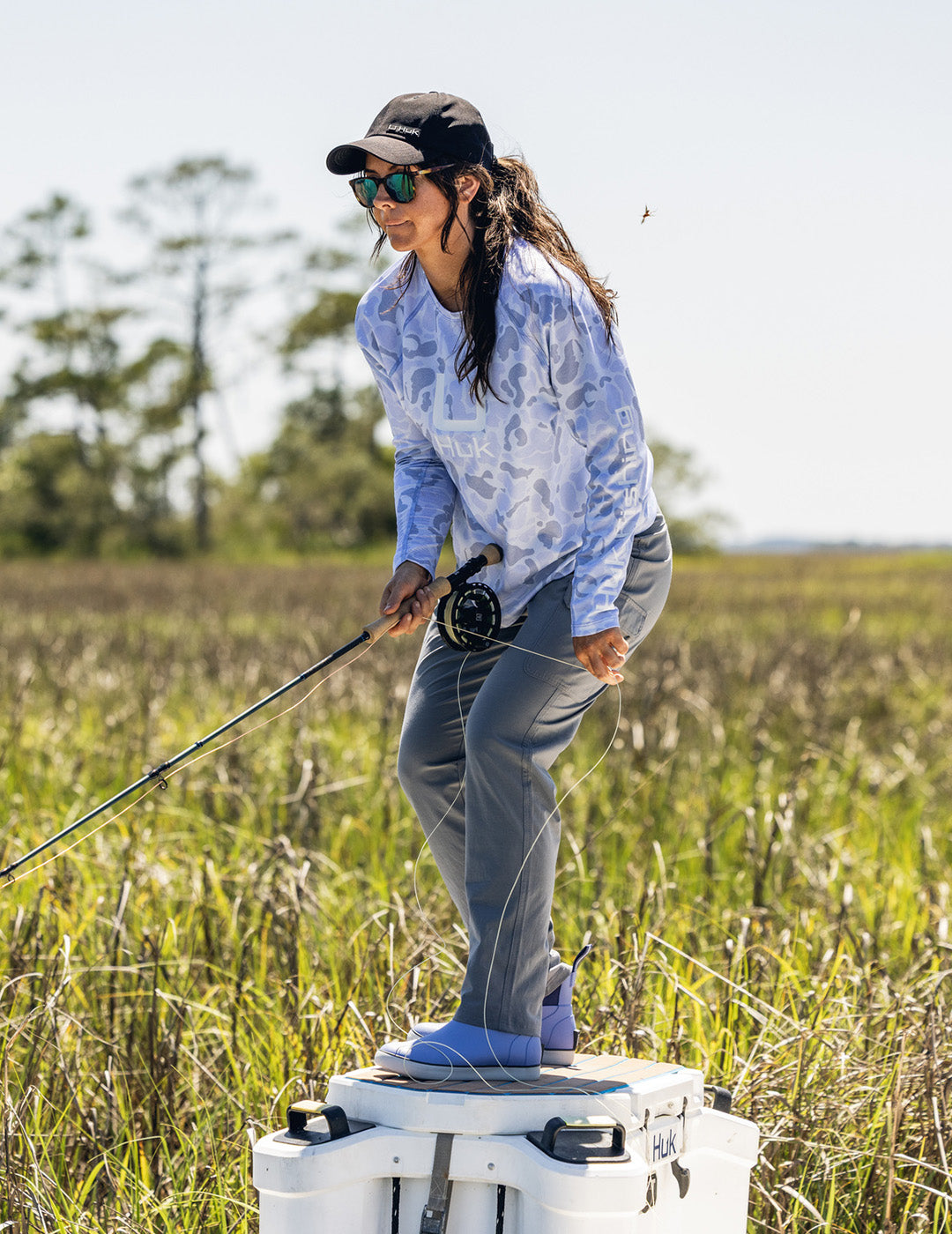 Discover the ultimate fishing pants for women in the Huk Next Level Collection. Engineered with high stretch, quick-drying fabric for optimal comfort and performance. Stain release, anti-microbial treatments, and UPF 30+ sun protection ensure pinnacle performance. Upgrade your outdoor experience with these versatile and durable fishing pants .
